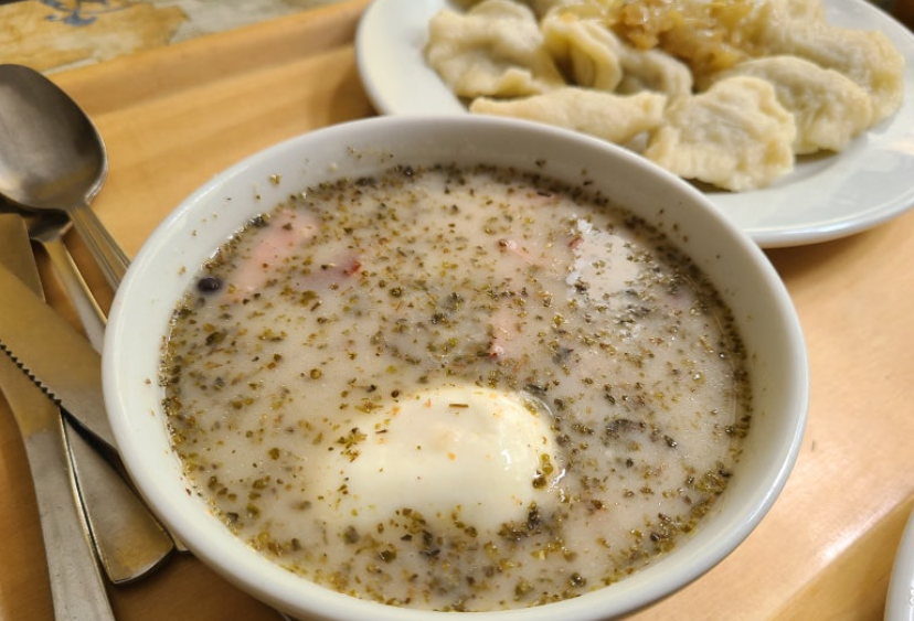 크림소스를 얹은 피에로기와 감자수프를 먹었다.
